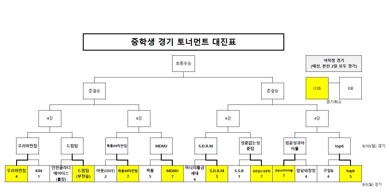 ¡Û °æ±â´Â ¿¹¼±Àü°ú µ¿ÀÏÇÏ°Ô ÁßÇб³ 1°æ±â - °íµîÇб³ 2°æ±â ¼ø¼·Î ÁøÇàµË´Ï´Ù. ¡Û ÁßÇб³ ¿©ÇлýÀº i12bÆÀÀÇ °æ±â ºÒÂüÀ¸·Î °æ±â°¡ ÁøÇàµÇÁö ¾Ê°Ô µÇ¾ú½À´Ï´Ù. ¡Û ¼¾ÅÍ ³», °æ±âÀå ³» ¹× °æ±â Áß ¿å¼³À» ÇÒ ½Ã °æ°í°¡ ÁÖ¾îÁö¸ç, ´©ÀûµÇ¸é ÅðÀå ¹× ½Ç°Ýó¸® µË´Ï´Ù.