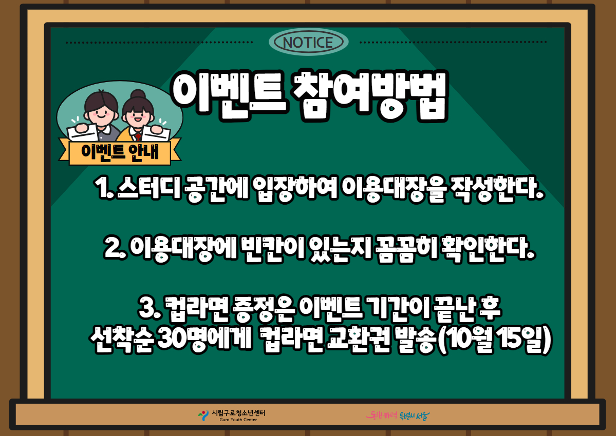 | ±¸·Îû¼Ò³â¼¾ÅÍ ½ºÅ͵ðÁ¸ °ø°£ ¿ÀÇ À̺¥Æ®¾È³»📖✒ | |||