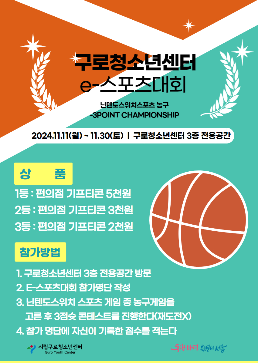 ÀÏ ½Ã : 2024³â 11¿ù 11ÀÏ(¿ù) ~ 11¿ù 30ÀÏ(Åä) ¿ÀÈÄ 1½Ã ~ 3½Ã ÃÑ 4ȸ±â ´ë »ó : 3Ãþ û¼Ò³âÀü¿ë°ø°£ ÀÔÀå û¼Ò³â Àå ¼Ò : 3Ãþ û¼Ò³âÀü¿ë°ø°£ ³» ¿ë: ´ÑÅÙµµ½ºÀ§Ä¡ - ´ÑÅÙµµ½ºÀ§Ä¡½ºÆ÷Ã÷ ³ó±¸ : 3Á¡½¸ ÄÜÅ×½ºÆ® ¹æ ¹ý: 1. ±¸·Îû¼Ò³â¼¾ÅÍ 3Ãþ Àü¿ë°ø°£ ¹æ¹® : 2. E-½ºÆ÷Ã÷´ëȸ Âü°¡¸í´Ü ÀÛ¼º 3. ´ÑÅÙµµ½ºÀ§Ä¡ ½ºÆ÷Ã÷ °ÔÀÓ Áß ³ó±¸°ÔÀÓÀ» °í¸¥ ÈÄ 3Á¡½¸ ÄÜÅ×½ºÆ®¸¦ Ç÷¹ÀÌÇÑ´Ù(ÀçµµÀüX) 4. Âü°¡ ¸í´Ü¿¡ ÀÚ½ÅÀÌ ±â·ÏÇÑ Á¡¼ö¸¦ Àû´Â´Ù Çý ÅÃ: 1µî : ÆÝÀÇÁ¡ ±âÇÁƼÄÜ 5õ¿ø 2µî : ÆíÀÇÁ¡ ±âÇÁƼÄÜ 3õ¿ø 3µî : ÆíÀÇÁ¡ ±âÇÁƼÄÜ 2õ¿ø