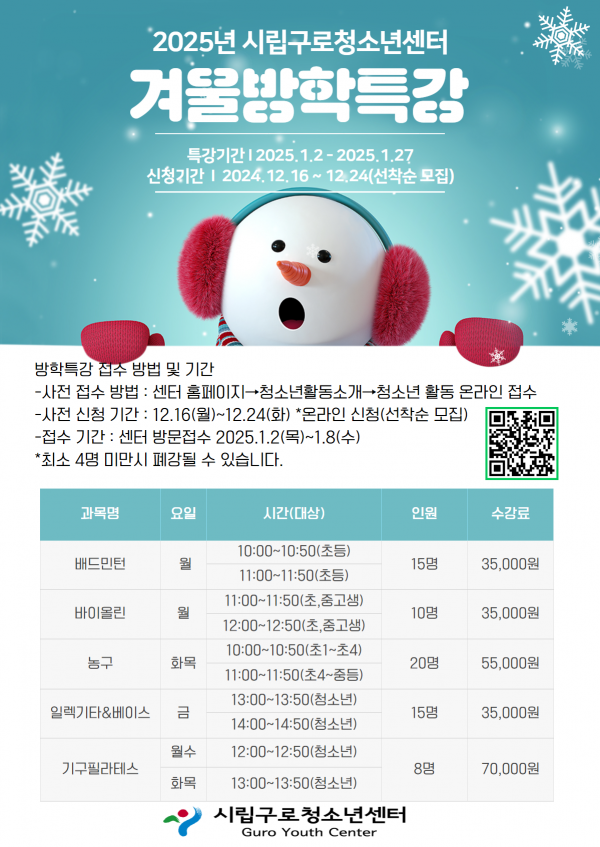 | [¾È³»] 📢 2025³â ½Ã¸³±¸·Îû¼Ò³â ¼¾ÅÍ °Ü¿ï¹æÇРƯ° ¾È³» | |||