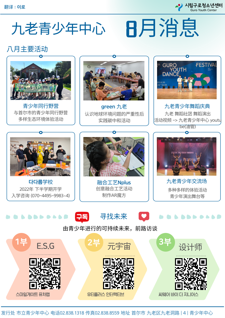 | 2022³â ±¸·Îû¼Ò³â¼¾ÅÍ 8¿ù Ȱµ¿¼Ò½Ä °øÀ¯(Çѱ¹¾î, Áß±¹¾î) | |||